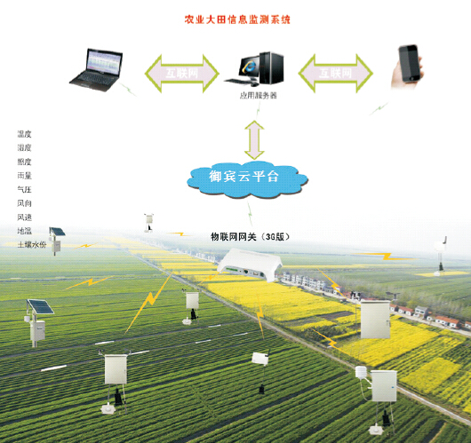 该系统是为农业现代化而研发,在现有的耕地及草场、绿化、林木、等土地、山地、沙地上,按照需求布置相应测量点,对区域内不同深度的土壤温度、土壤水分等作物、林木等长势相关的土壤墒情信息,以及温度、湿度、光照、雨量、风速、风向、气压等空间环境信息的数据进行测量和采集,并通过对数据进行积累和挖掘,既可以实现根据每个地区、地块的土壤透水率及环境气候状况,科学调整灌溉渠网布局,实现节水、节能,又可以根据土地及小气候特点适时调整种植适宜的农作物、草场、林木等,提高单产或成活率,终达到增加收入的目的,同时,还可避免耕地荒漠化、盐碱化。